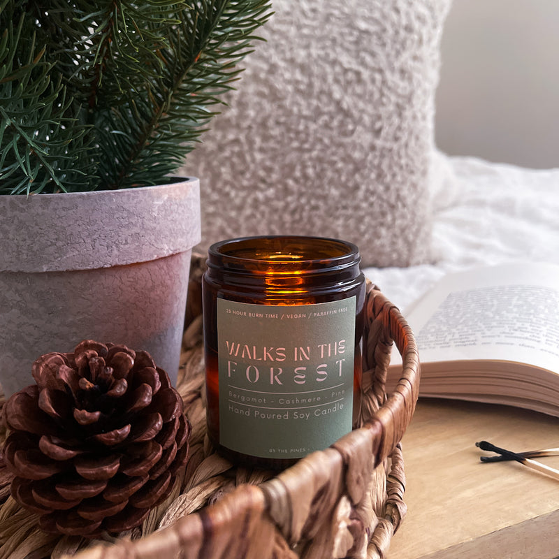 Our journey began with a simple flicker: Walks In The Forest. This very first candle scent, crafted in our humble home, ignited our passion for creating scents that transport you. It was the start of everything, and inspired every candle that followed.